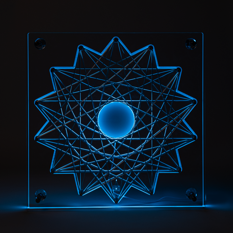 Our Pulsar™ PEMF device takes inspiration from this celestial phenomenon. Designed as a 14-pointed star, it’s both a functional wellness tool and a stunning piece of art. Mounted on an engraved acrylic sheet with programmable full-spectrum RGB lighting, it’s a centerpiece that brings atmosphere and intention into any space.